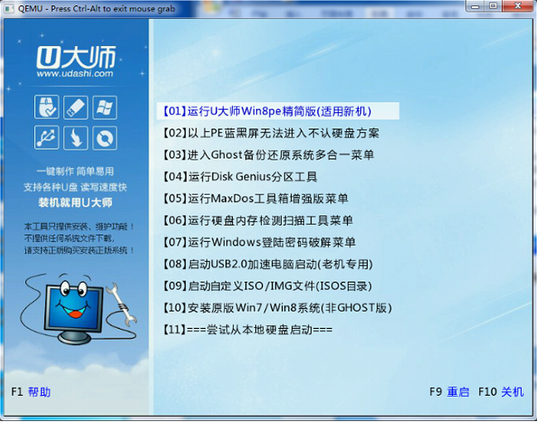 5、如果出現(xiàn)下圖中的界面,說明U大師U盤啟動制作工具啟動成功。