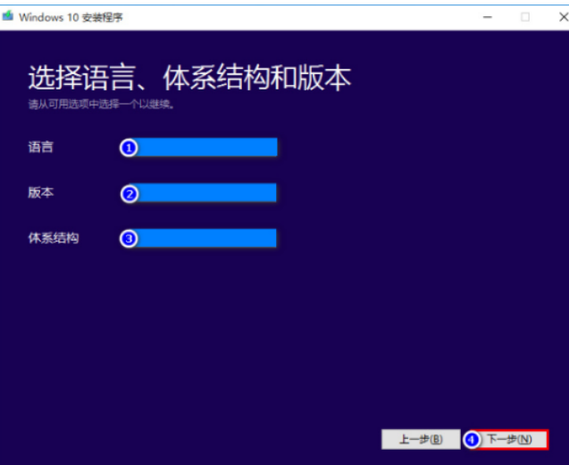 4.選擇當(dāng)前系統(tǒng)相同的語(yǔ)言,版本以及體系結(jié)構(gòu),完成之后點(diǎn)擊下一步即可。