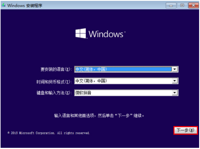 8.此時(shí)將會(huì)進(jìn)入到Win10系統(tǒng)的安裝界面,點(diǎn)擊下一步即可。