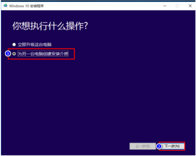 3.雙擊打開(kāi)工具,在進(jìn)入的界面時(shí)選擇【為另一臺(tái)電腦創(chuàng)建安裝介質(zhì)】。