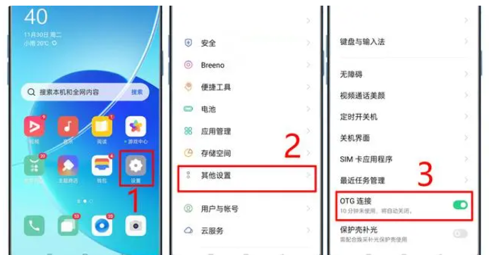 插上OTG轉(zhuǎn)換頭后設(shè)置: