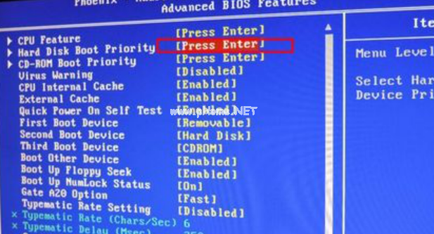 3、按↓方向鍵選擇Hard Disk Boot Priority回車;