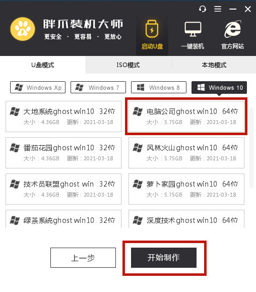 3.在這里我們選中自己想要下載的windows10系統,再點擊下方的“開始制作”,然后在警告頁面點擊“確定”;、