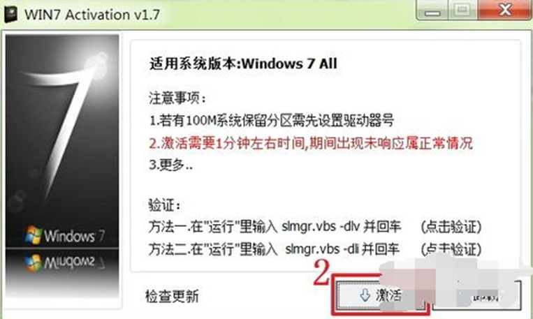 2.進入主頁面后,我們點擊win7激活工具程序界面中的“激活”按鈕,開始激活系統(tǒng)。