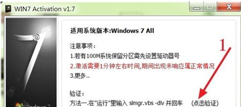 5.重新啟動系統(tǒng)完成后,再次打開win7激活工具,點擊驗證方法一開始驗證是否已經(jīng)成功激活。