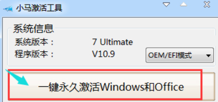 4、運(yùn)行后,會出現(xiàn)小馬Win7激活工具界面,點(diǎn)擊“一鍵永久激活Windows和Office”。