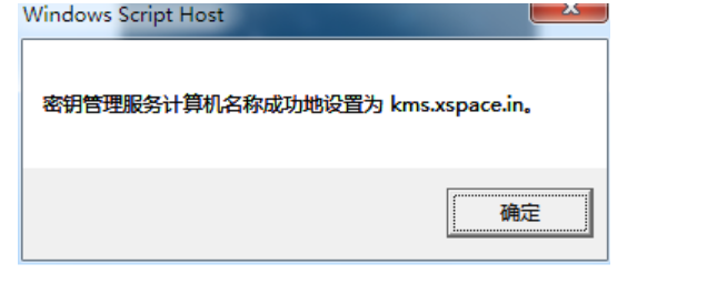 7、此時將彈出“密鑰管理計算機名稱已成功地設置為kms.xpace.in”的提示窗口,直接點擊“確定”按鈕。