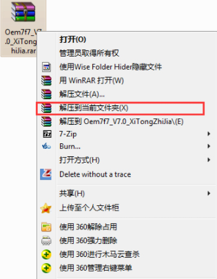 1、首先點擊獲取該小馬win7激活工具(請先關閉殺毒軟件再運行),然后右鍵點擊解壓到當前文件夾。