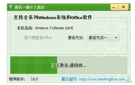 2、暴風(fēng)激活工具一鍵永久激話 win7 系統(tǒng),win8 系統(tǒng),win8.1 系統(tǒng),win10 系統(tǒng)和各系列產(chǎn)品的 Office 軟件的激話問(wèn)題,輕輕松松一鍵就可以完成永久極致無(wú)網(wǎng)激話,徹底超過(guò)別的一切激話工具。