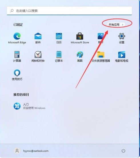 1、使用鼠標點擊Windows 11操作系統(tǒng)的開始菜單,在開始菜單中點開【所有應用】。