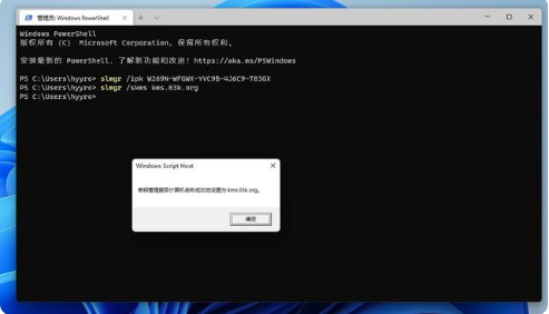3、在命令窗口中,使用slmgr命令將Windows 11操作系統(tǒng)的序列號更改為下面的序列號slmgr /ipk W269N-WFGWX-YVC9B-4J6C9-T83GX