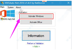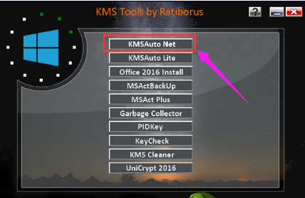 2. 選擇軟件主界面上的KMSAuto Net選項(xiàng)。