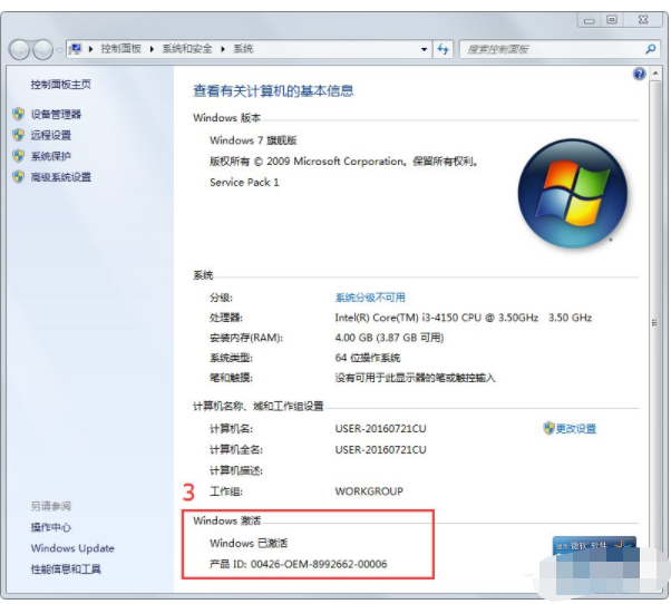 3、然后在出現(xiàn)的界面中也可以看出Win7操作系統(tǒng)已經(jīng)激活。