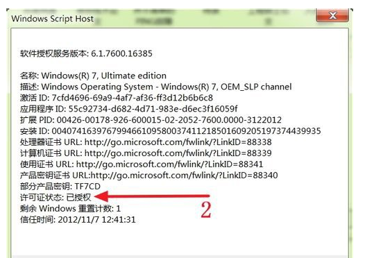 2、從下圖可以看出Win 7系統(tǒng)的許可證狀態(tài)是“已授權(quán)”;