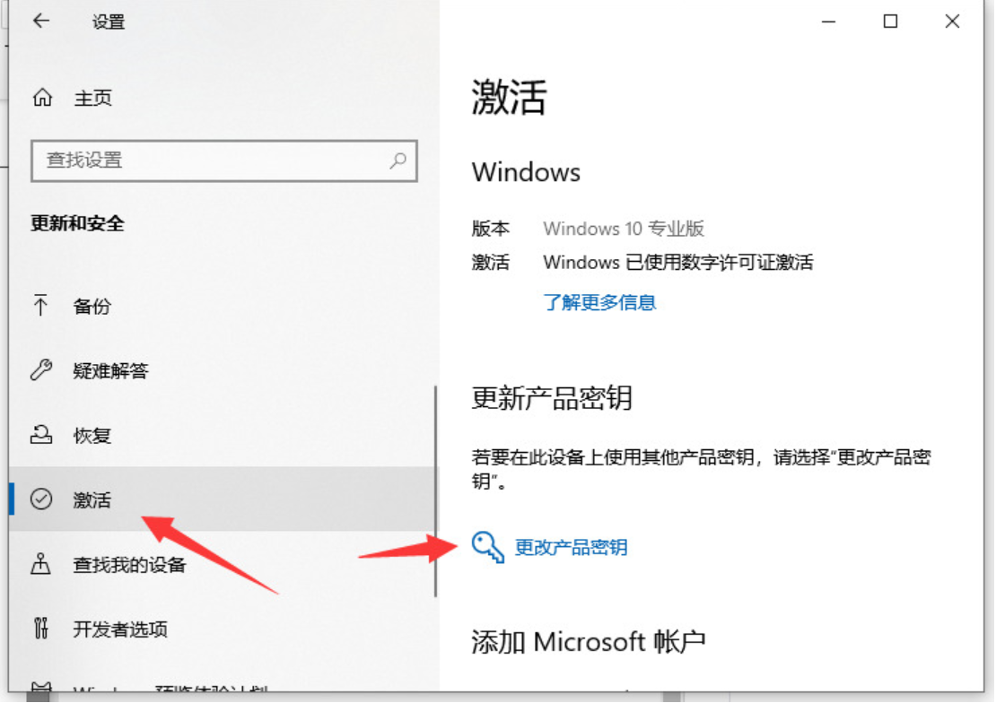 3、然后選中左側的激活,再點擊右側的更改產品密鑰;