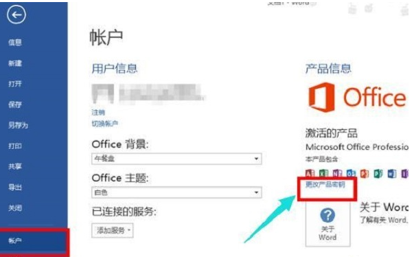 2、點(diǎn)擊下方“賬戶”,在右側(cè)選擇“更改產(chǎn)品密鑰”;
