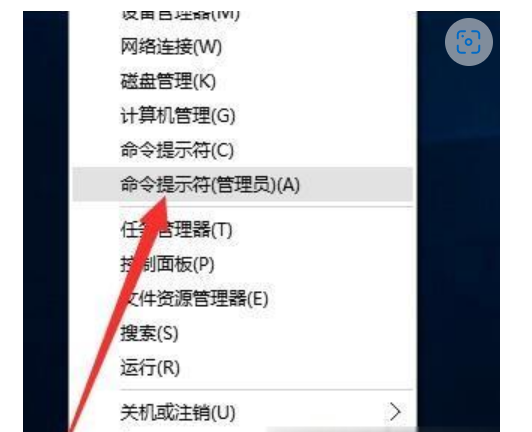 1.右擊桌面左下角的“Windows”按鈕,從彈出的右鍵菜單中選擇“命令提示符(管理員)”項;