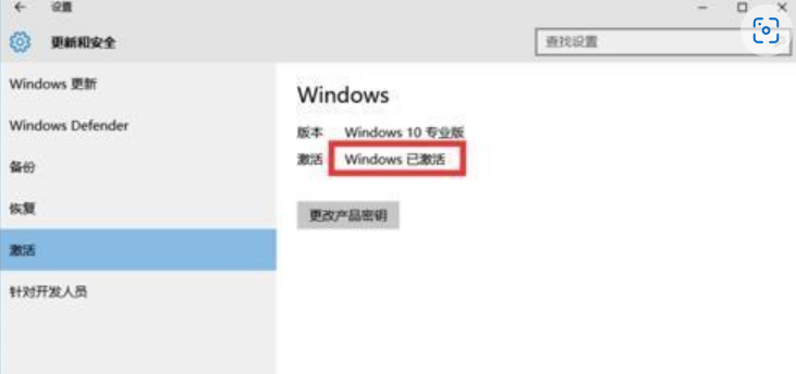 8.從打開的“設(shè)置”界面中,點(diǎn)擊“更新和安全”按鈕進(jìn)入,切換到“激活”選項卡,就可以看到當(dāng)前Win10正式版已激活。