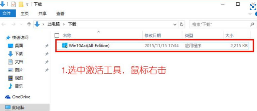 2、解壓后是這樣的。選中windows10激活工具,鼠標右擊