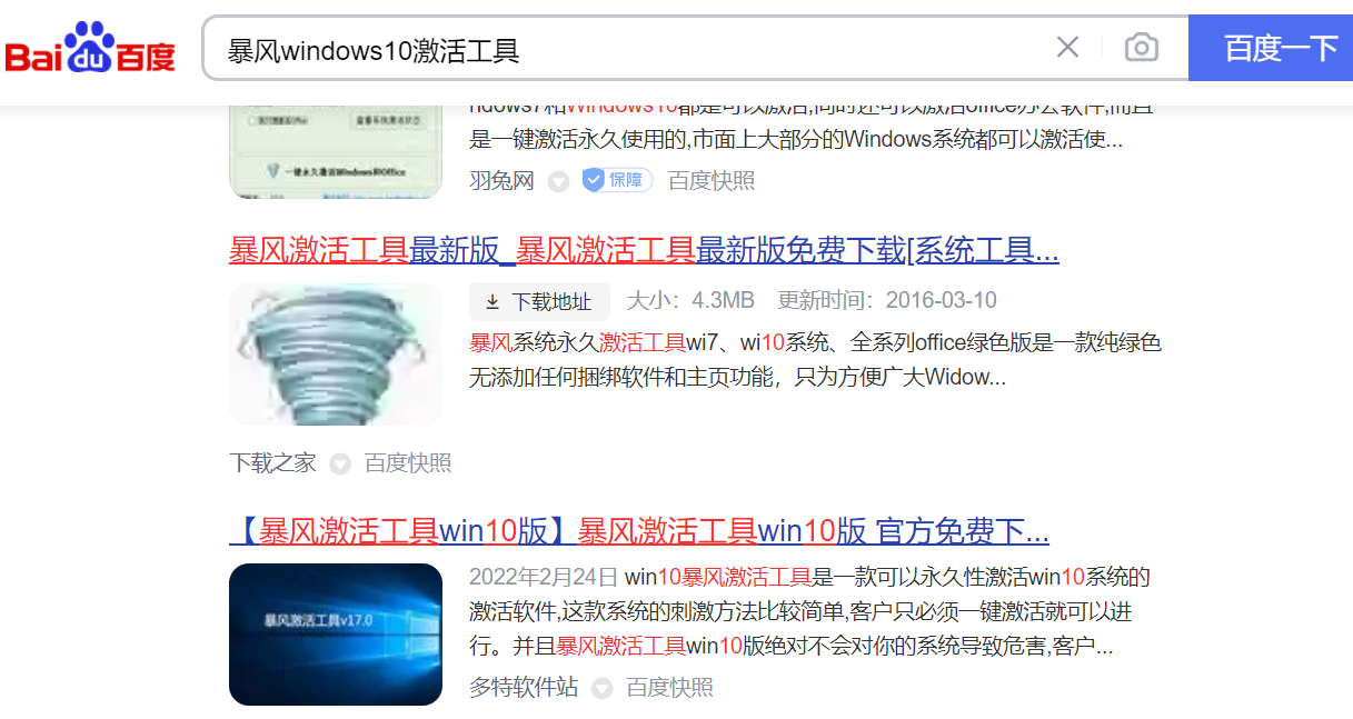 2、接著百度搜索并下載暴風windows10激活工具