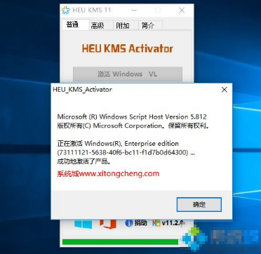 3. 出現(xiàn)成功地激活產(chǎn)品的提示,說明win10已經(jīng)激活成功。如果保留此工具,kms激活一般是180天自動循環(huán),類永久激活。