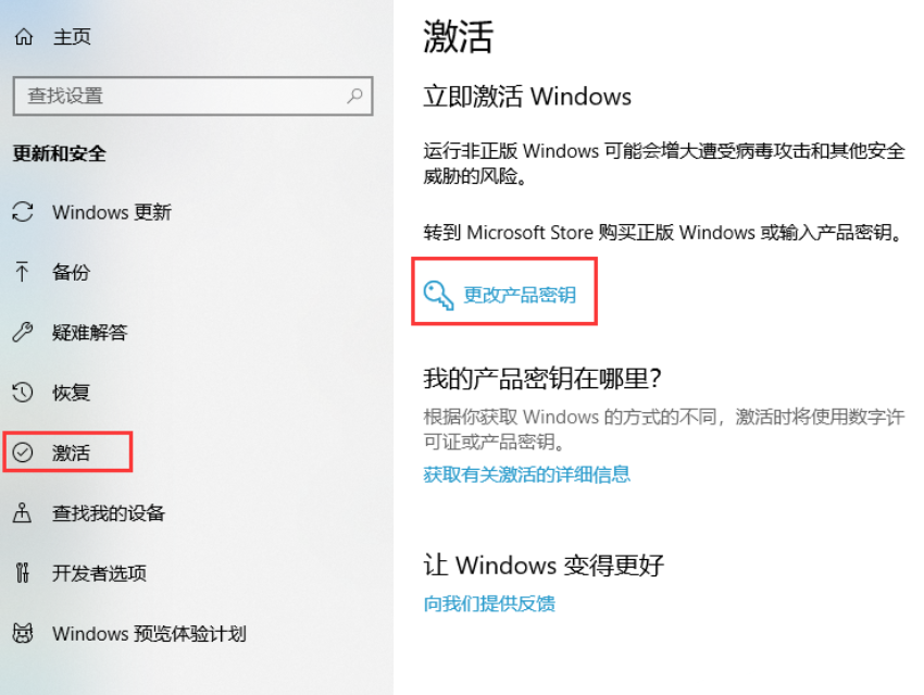 3.在設(shè)置頁面里,點擊打開“更改產(chǎn)品密鑰”;