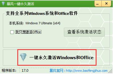 軟件版本:暴風一鍵永久激活工具