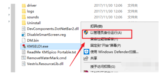 3、右擊kmseldi.exe選擇“以管理員身份運(yùn)行”。