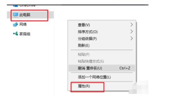 6、重啟后,按WIN+E鍵,打開(kāi)“文件資源管理器”,點(diǎn)擊“此電腦”,選擇“屬性”。
