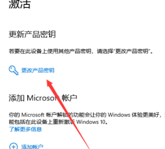 3、然后我們點擊打開頁面中看到的的“更改產品密鑰”。