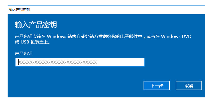 5.最后輸入產(chǎn)品密鑰,點(diǎn)擊下一步即可。
