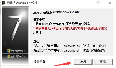2、進(jìn)入程序,直接點(diǎn)擊激活選項(xiàng),軟件便會自動開始激活win7系統(tǒng)。。
