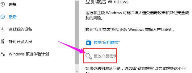 2、在激活界面下點擊更改密鑰;