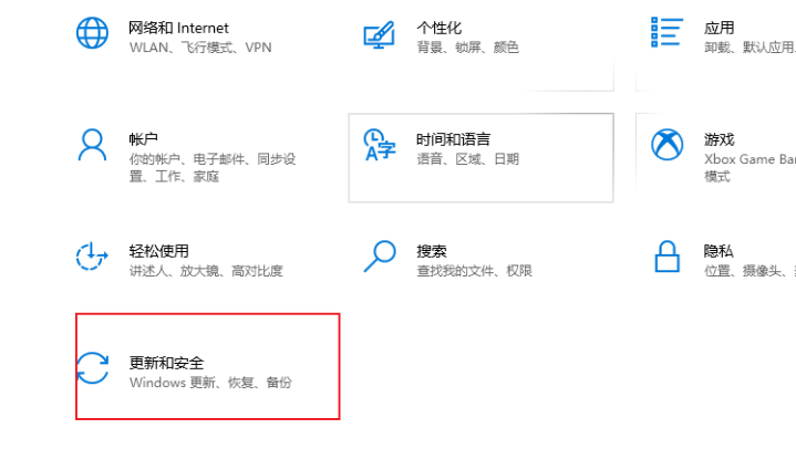 2、進入到win10系統(tǒng)的設(shè)置界面之后,點擊“更新和安全”。
