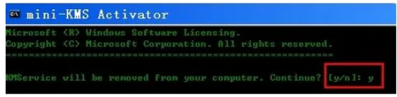4、在彈出的對(duì)話框中輸入“y”。按回車。