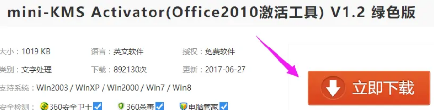 1、搜索并下載“mini-KMS Activator(Office2010激活工具) 。