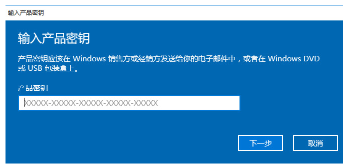 5.最后輸入產(chǎn)品密鑰,點(diǎn)擊下一步即可激活系統(tǒng)。