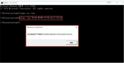 3、再次輸入下列命令:slmgr /ipk W269N-WFGWX-YVC9B-4J6C9-T83GX,按回車鍵即可,會提醒:“取得成功的安裝了產(chǎn)品密鑰”。
