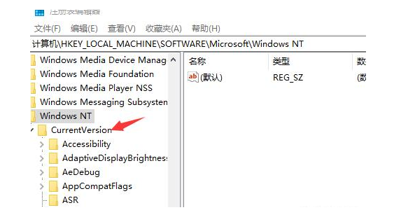 3、再依次展開Microsoft、Windows NT、CurrentVersion。