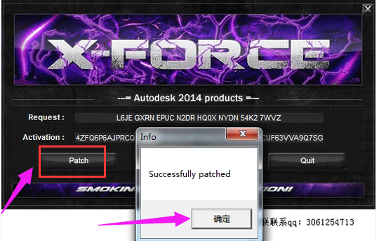 10、這時我們就會得到激活碼,點(diǎn)擊“Patch”,點(diǎn)擊“確定”