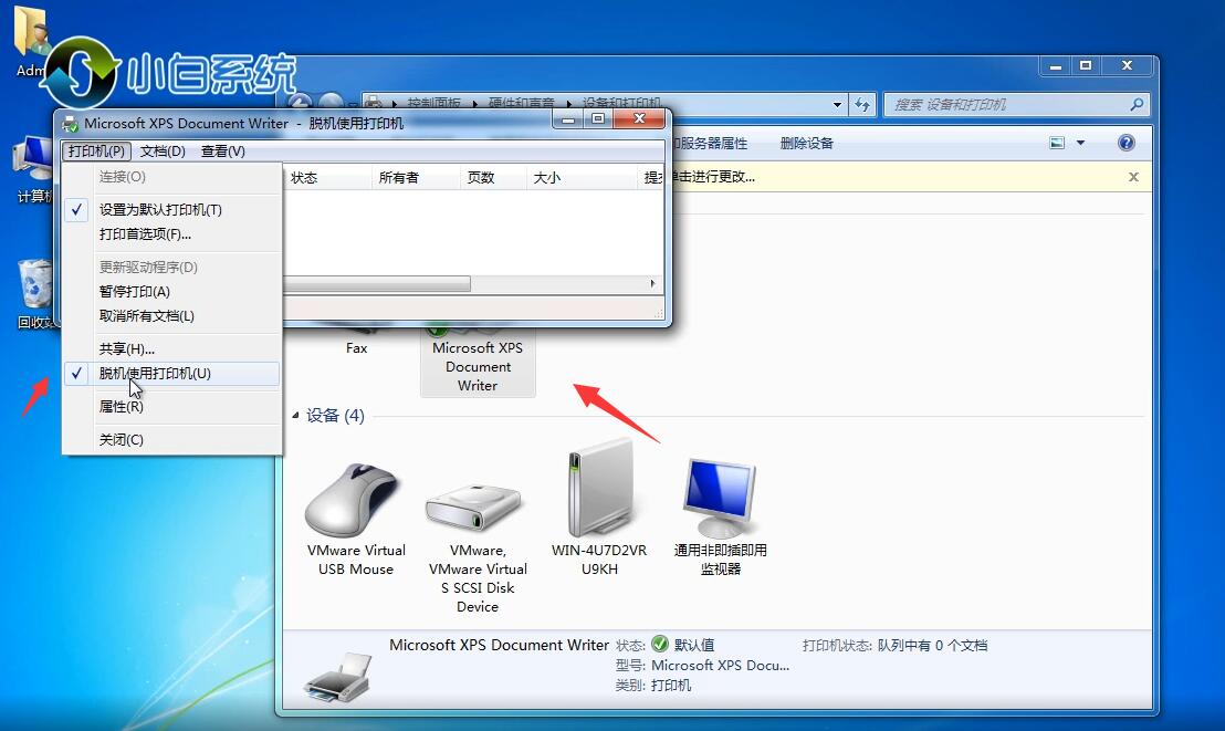 2、打開設(shè)備和打印機(jī),找到打印機(jī),取消脫機(jī)執(zhí)行打印機(jī)即可。