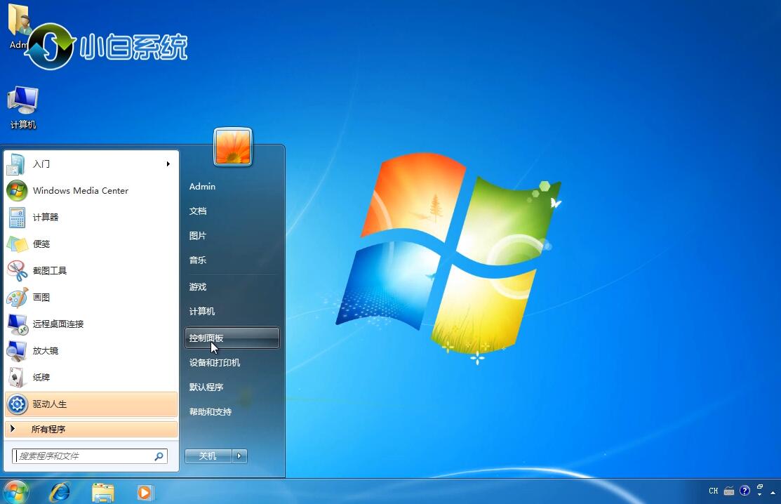 1、點(diǎn)擊開始菜單,點(diǎn)擊控制面板;