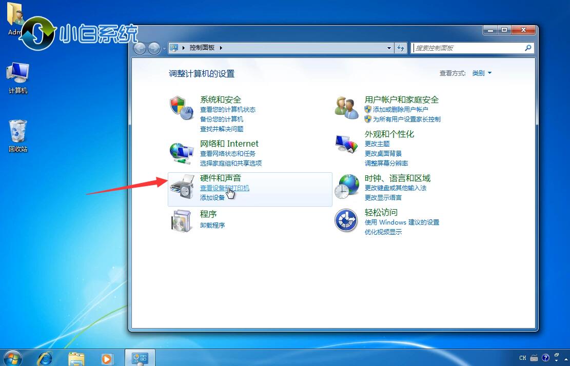 2、點(diǎn)擊打開‘設(shè)備和打印機(jī)’,在打印機(jī)和傳真界面找到你的打印機(jī)。