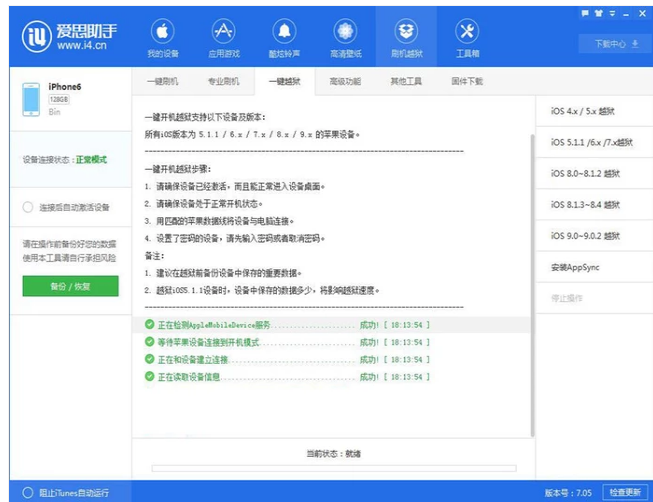 軟件版本:愛思助手v7.05+盤古越獄工具v8.1