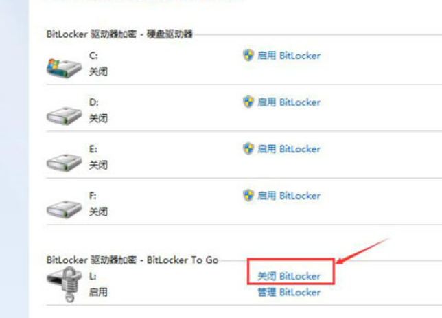 4、解鎖后,在剛剛的窗口中點擊“關閉bitlocker”。