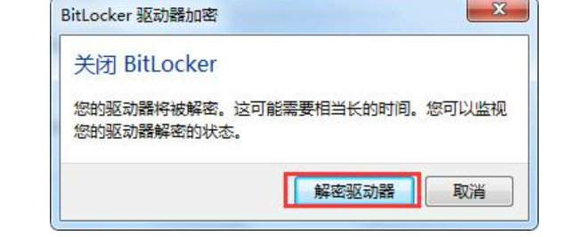 3.在“關閉bitlocker”窗口中點擊解密驅動器按鈕。