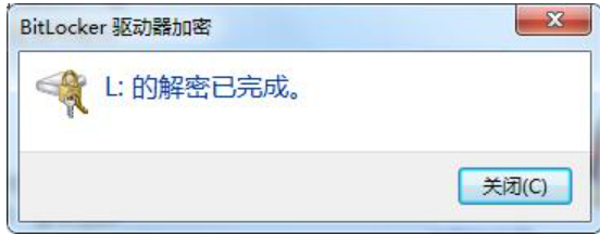 7、讀條完成后解密成功,彈出提示框,點擊關閉按鈕即可。