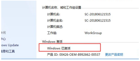 6、在電腦屬性界面的最下方,我們可以看到win7系統(tǒng)已激活。