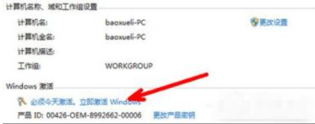 2、在計(jì)算機(jī)屬性窗口中,最下方有激活信息,如果沒有激活,點(diǎn)擊“必須今天激活,立即激活Windows”進(jìn)行激活。