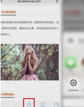 4、在Safari中瀏覽,點(diǎn)擊轉(zhuǎn)發(fā)按鈕,再點(diǎn)擊一下Screenshot。
